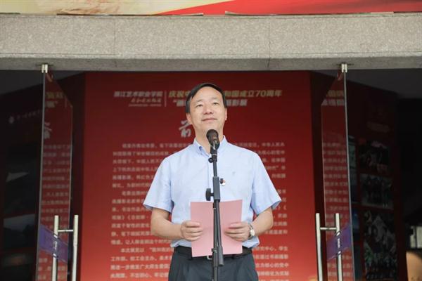 為慶祝中華人民共和國成立70周年,浙江藝術職業學院舉辦以“我和我的祖國”為主題的“畫時代”書畫攝影展,今天上午在美術係展廳舉行開幕式。