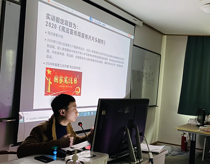 動漫設計專業教師吳煒棟的《數字合成與特效》結合我國憲法宣傳周的時事主題,以拍攝一個憲法走進生活的短視頻為課程內容,結合學生的切身生活體驗,展現當代大學生的精神麵貌和法治精神。