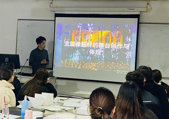 舞台影視美術設計與製作專業教師吳放的《影視舞台美術設計(一)》以2019年上海國際藝術節展演劇目大型交響詩《英雄頌》的創作為案例,通過自身的創作經曆講述《主旋律題材舞台創作與體現》的課程主題,使同學們在回溯近代中國史的過程中,了解中國革命的艱難與不易,培養愛國、愛黨情懷。