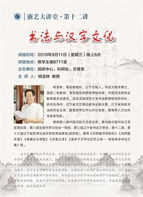 9月11日晚上,國家二級教授、沈陽師範大學書法教育研究所所長楊寶林教授做客浙藝講壇,為師生們帶來了一場題為《書法與漢字文化》的精彩講座。講座由民間文藝研究中心副主任(主持工作)史長虹主持。