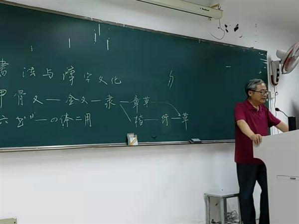 講座伊始,楊寶林教授從中國漢字的發展演變史出發,探索書法與漢字文化的關係。詳盡闡述了中國文字從甲骨文到草書的演進曆程,以及篆、隸、楷、行、草五種字體的用筆,結構以及美學特征。並指出漢字的創製基本上是一個觀物取象的過程,而漢字的發展則是一段圖畫文字的象形特征逐漸退化、而表意功能不斷完善的曆史。