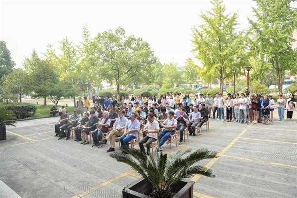 原浙江省政協常委、原浙江省文化廳廳長錢法成,校黨委書記朱海閔,校黨委副書記夏開堂,校黨委委員、宣傳部部長馬向東,各係各部門負責人,提交參展作品的退休老同誌和200餘名師生參加了開幕式。夏開堂主持開幕式。