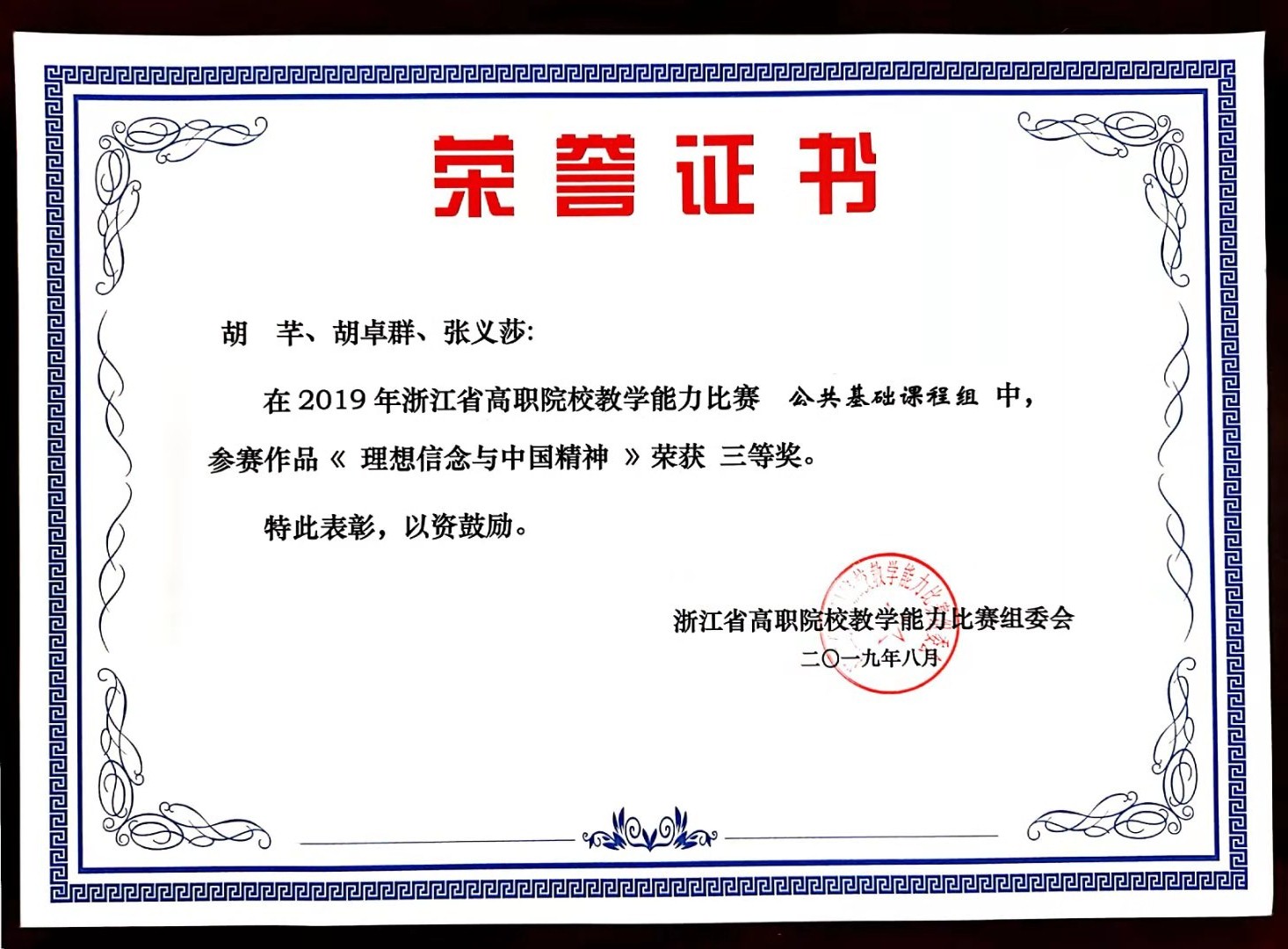 日前,由浙江省教育廳主辦的2019年全省高職院校教學能力比賽在寧波落下帷幕,全省共46所高職院校228個團隊參賽,139個團隊獲得獎項。我院選送的4個教師團隊全部獲獎,二等獎1項,三等獎3項,其中社會科學部教師、省級高校思政理論課名師工作室成員胡芊領銜團隊獲三等獎,實現我部在該獎項上的突破。