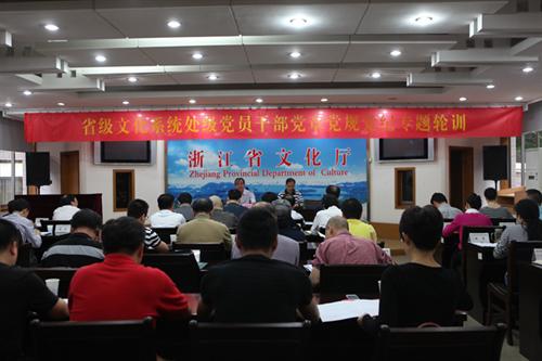 9月23日下午,由浙江省文化廳組織、浙江藝術職業學院承辦的全省文化係統處級黨員幹部黨章黨規黨紀專題輪訓班(第一期)在浙江省文化廳開班。省文化廳、省文物局機關和廳屬企事業單位的處級黨員幹部參加了此次培訓。