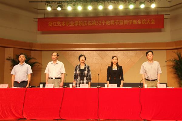 9月29日下午,浙江藝術職業學院慶祝第32個教師節暨新學期全院大會在音樂廳舉行。黨委書記朱海閔,院長黃杭娟,黨委委員、副院長章軻,黨委委員、副院長沈恒,黨委委員、紀委書記夏開堂和全院教職工出席大會。會議由沈恒主持。