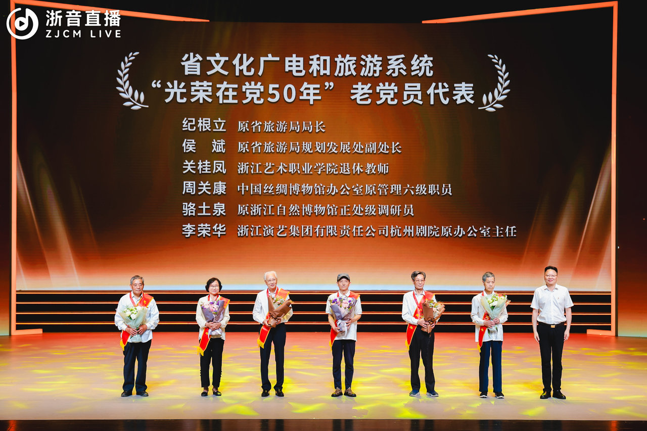 省文化廣電和旅遊廳黨組書記、廳長陳廣勝,省委直屬機關工委常務副書記陸發桃,省監委委員柳鳳輝,省委宣傳部部務會議成員、省紀委省監委駐省委宣傳部紀檢監察組組長錢國偉,省委直屬機關工委副書記、紀檢監察工委書記魏祖民,省委直屬機關工委副書記俞忠勤,廳領導朱海閔、張廣洲、呂偉剛、姚禮敏、柳河,我校領導班子成員等出席活動,我校“光榮在黨50年”黨員、省級文化廣電和旅遊係統“兩優一先”表彰對象、支部書記代表、黨員代表等參加活動。