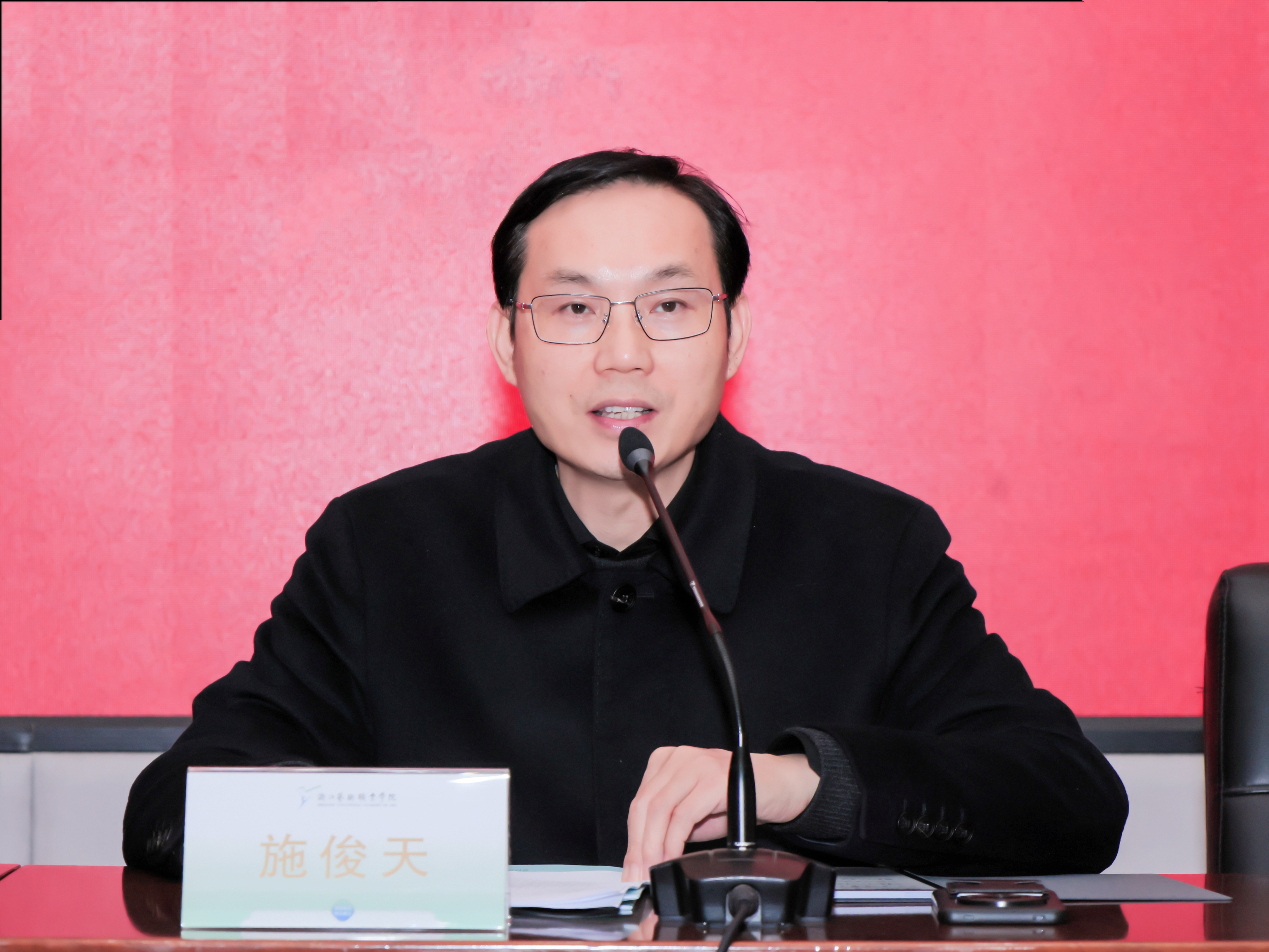 施俊天就貫徹落實好會議精神作了部署。一要提高政治站位,增強抓落實的政治自覺。堅持以習近平新時代中國特色社會主義思想為指導,全麵貫徹二十屆中央紀委四次全會、省紀委十五屆四次全會精神,切實把思想和行動統一到黨中央的決策部署上來,統一到學校黨委全麵從嚴治黨的工作要求上來。二要壓實政治責任,提升抓落實的方法路徑。全校各級黨組織要認真組織傳達學習本次大會精神,各級黨組織書記要切實履行“第一責任人”職責,班子成員要認真落實“一崗雙責”要求,把全麵從嚴治黨的任務和要求落細落地。三要提升政治能力,確保抓落實的質量效果。要緊密圍繞學校高質量發展規劃,主動謀劃、統籌推進2025年關鍵發展期的戰略布局,以建校70周年為契機,進一步凝聚發展共識、激發奮進力量,奮力開創學校事業發展新局麵。