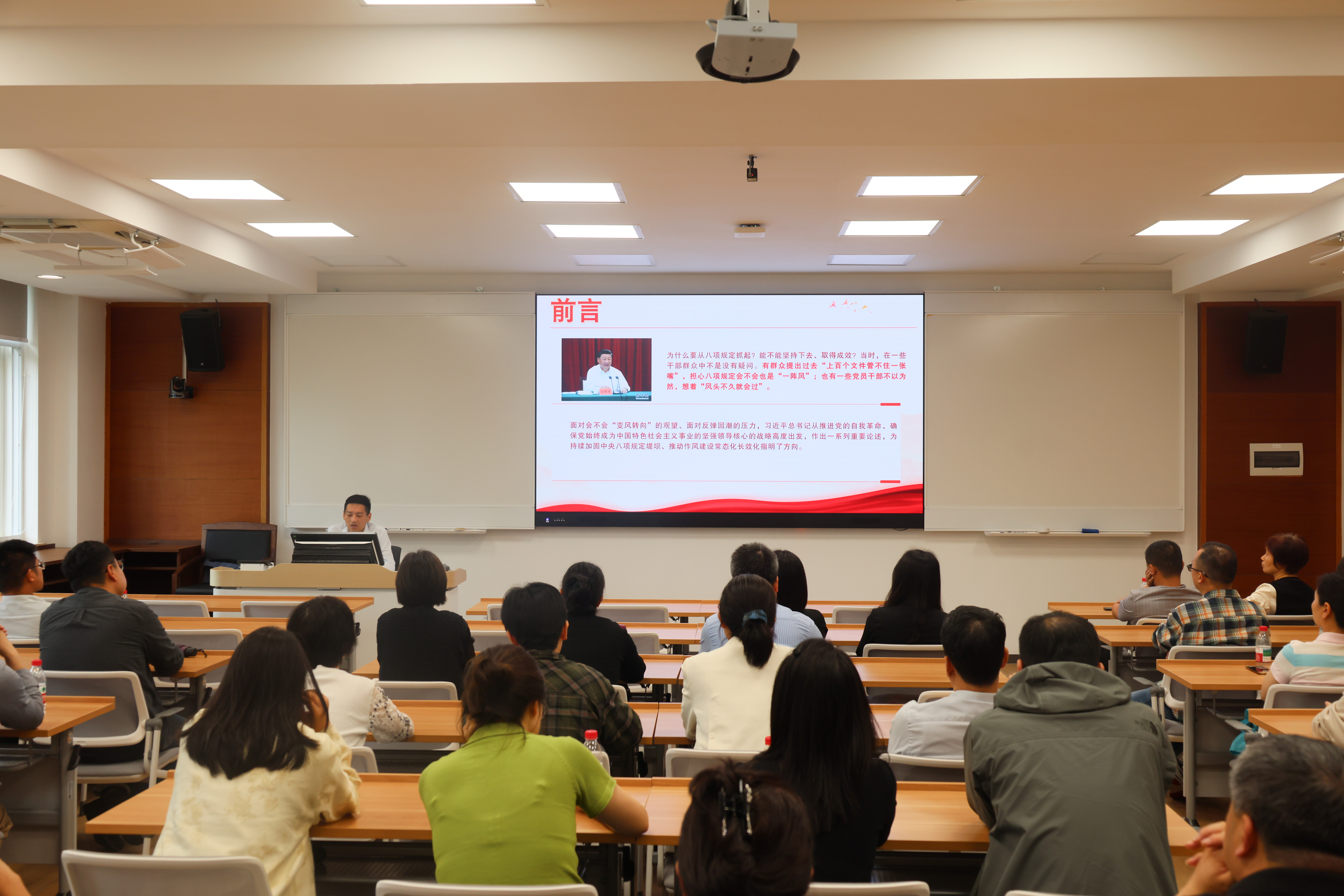 隨後,全體成員參加了《深入貫徹中央八項規定精神,持續推動黨風政風建設》專題講座。省委黨校劉偉從八項規定出台的時代背景、核心要義和製度體係三個方麵,深入分析了其在推進全麵從嚴治黨中的裏程碑意義。同時結合高校工作實際,重點解讀了公務接待、會議培訓、科研經費使用等高校易發多發領域的政策邊界和操作規範。通過剖析近年來違反中央八項規定精神的典型案例,以案為鑒、以案釋紀,使與會人員深刻認識到“四風”問題的頑固性和反複性。