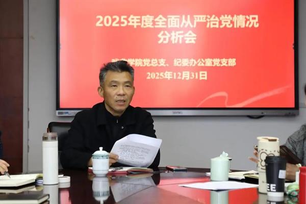 2025年12月31日,戲曲學院黨總支與紀委辦公室黨支部聯合召開2025年度全麵從嚴治黨分析會。校黨委委員、紀委書記沈軍甫出席會議並作專題講話,紀委辦公室黨支部全體黨員,戲曲學院領導班子成員及辦公室主任、組織員、黨風廉政建設監督員、黨支部書記、教研室主任代表等參加會議,會議由戲曲學院黨總支書記謝誌勇主持。