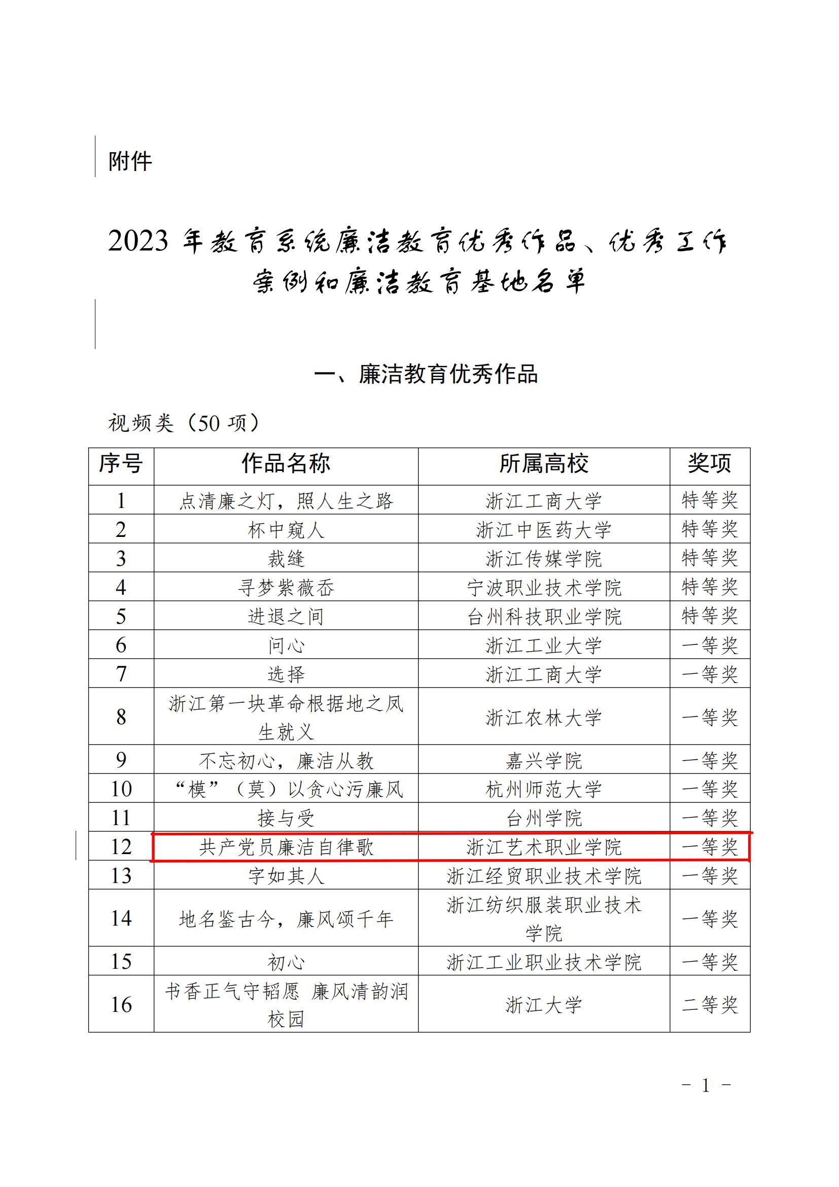 ▲由章蔓麗、孫建國創作的《共產黨員廉潔自律歌》獲全省教育係統廉潔教育係列活動優秀視頻作品一等獎