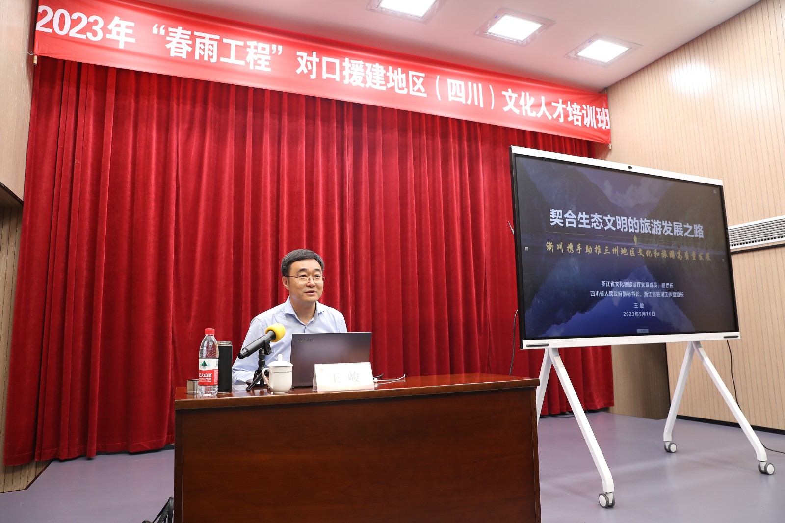 四川省人民政府副秘書長、浙江省駐川工作組組長、浙江省文化和旅遊廳黨組成員、副廳長王峻授課