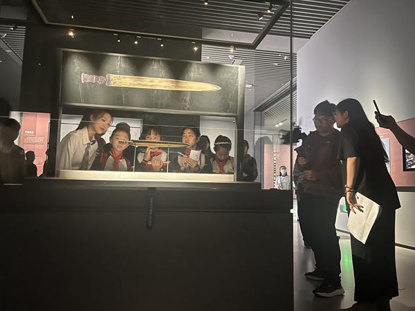 公開課展示團隊成員由劉興蓉(22影視編導班)、孫仁東(22戲劇影視表演1班)、童煜鑫(22戲劇影視表演1班)、王艾嘉(22戲劇影視表演1班)、王博凱(22影視多媒體2班)、徐偉琦(22影視多媒體2班)六位同學組成,在馬克思主義學院陳麗麗、胡芊、胡卓群三位指導教師的精心指導下,選取《思想道德與法治》第三章“繼承優良傳統 弘揚中國精神”中第二節“做新時代的忠誠愛國者”進行內容架構,通過走進浙江省博物館(之江館區),尋找四件“鎮館之寶”——戰國越王者旨於睗劍、元黃公望富春山居圖卷、新石器時代良渚玉琮王、朱金木雕寧波花轎(萬工轎)——實施了一堂“博物館裏的思政課”,用文物故事解碼新時代的愛國主義,增強文化自信,踐行愛國誓言。經過師生團隊共同努力,作品突出重圍,斬獲佳績。