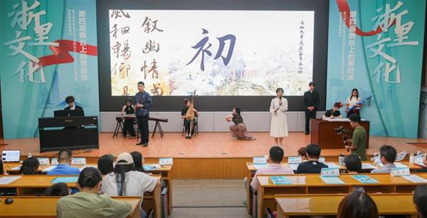 婺劇《花頭台》以優美的旋律,拉開了整場活動的序幕,12個由學生們自編、自導、自演,結合文化傳承和時代發展的精彩節目一一展示。第一篇章“古韻清風”圍繞中華優秀傳統文化,第二篇章“紅色根脈”講述紅色革命文化,第三篇章“之江潮湧”彰顯社會主義先進文化。整場展演包含民樂合奏、情景劇、幕布劇、書法、朗誦、歌舞、走秀、微黨課等多種類型,將思政課和豐富的藝術形式有機融合在一起,展現了浙江深厚的文化底蘊和人文魅力,給在場師生上演了一堂生動、立體、深刻的舞台“大思政課”。