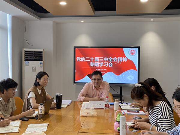 為深入學習宣傳貫徹黨的二十屆三中全會精神,切實把馬克思主義學院全體教職工的思想和行動統一到全會精神上來,9月27日,馬克思主義學院召開黨的二十屆三中全會精神專題學習會。黨委委員、組織部部長、人才辦主任周應中、馬克思主義學院領導班子及全體教職工參加會議。