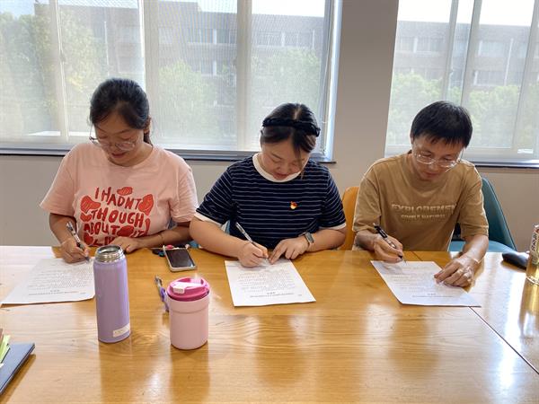 會上,全體教師認真學習了《浙江省教育廳辦公室關於強調高校教師不得組織參與麵向中小學生違規校外培訓的通知》等文件精神,並簽訂承諾書。