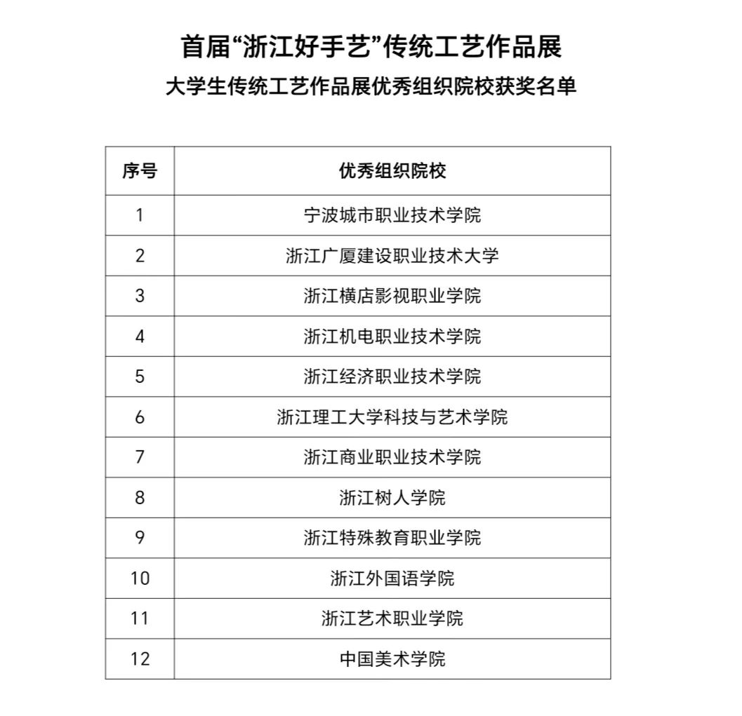 附件2.首屆“浙江好手藝”傳統工藝作品展——大學生傳統工藝作品展優秀組織院校獲獎名單