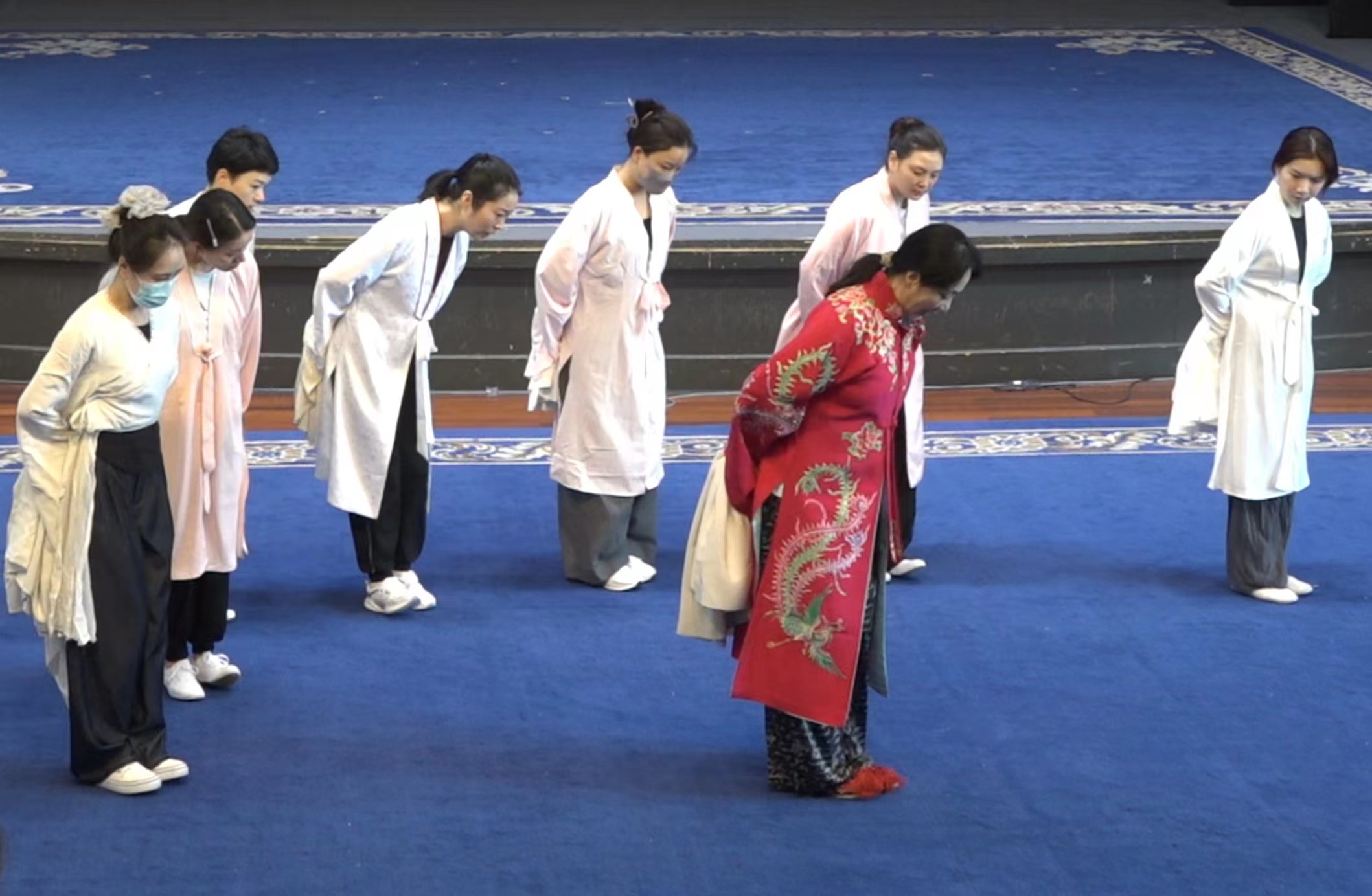 生、旦學員以《牡丹亭·驚夢》《牡丹亭·遊園》開場,展示此次培訓京、昆、晉、川等多元技藝課堂,展示長綢、褶子功、趟馬、甩發功、長水袖等基本技巧,以四功五法展現戲曲藝術的精妙絕技。