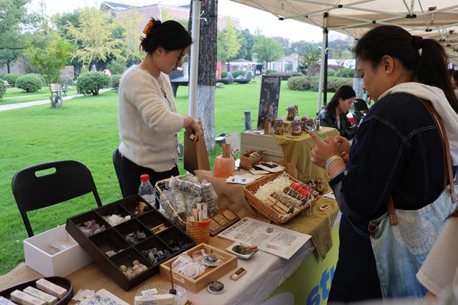 校慶期間,校友創意市集熱鬧啟幕,成為手藝傳承的生動舞台。我院師生團隊打造的創意攤位:拙青文化、拾藍造物、安埴手作、冒結棍個攤兒……吸引眾多校友駐足。木板雕刻的肌理、陶瓷器物的溫潤、文創產品的巧思、金屬藝術的靈動……師生們的匠心之作琳琅滿目,每一件都凝聚著對藝術的執著與熱愛。