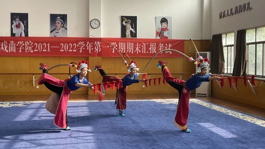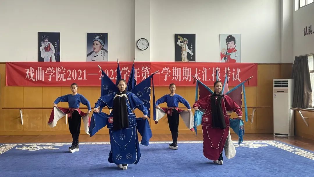 腿毯、身段、把子、唱腔、越劇語音、樂理視唱、劇目,同學們努力展示所學,爭取秀出最好的自己。由於疫情原因,家長們和個別委培單位無法親臨現場,本次期末考試還通過全程直播的方式向大家展示,獲得了一致好評。