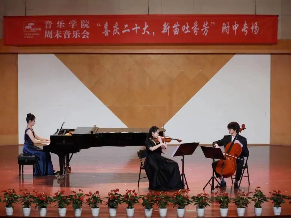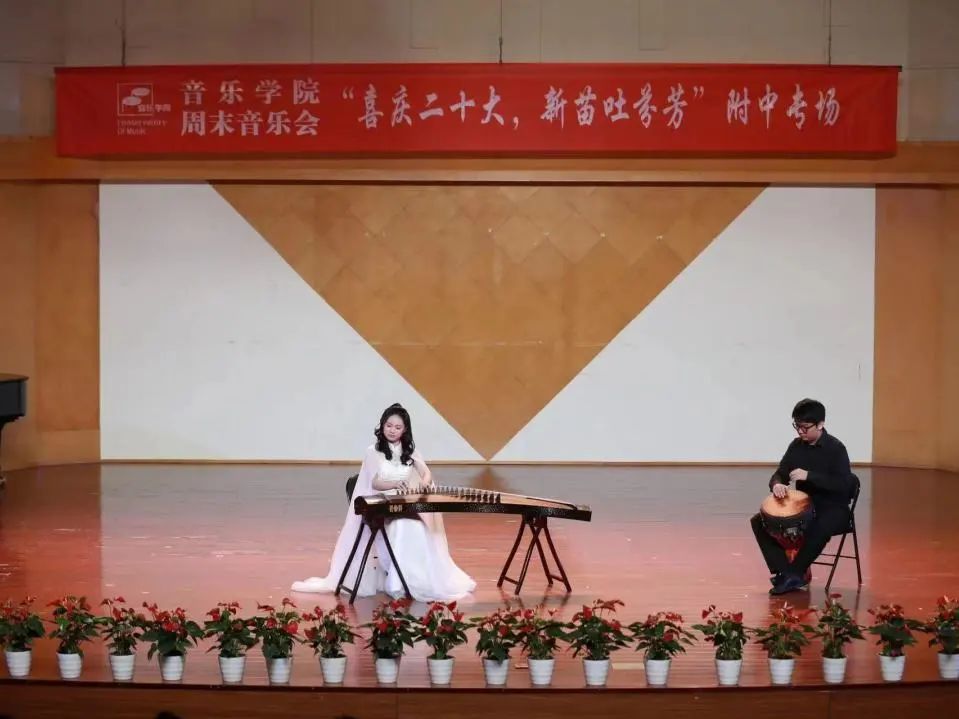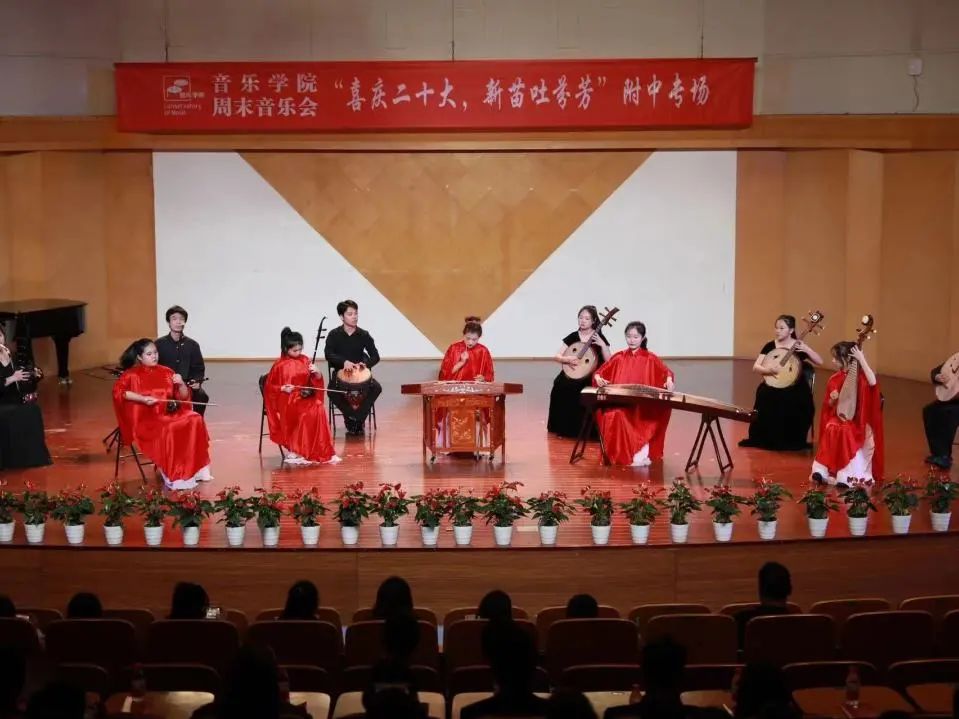11月4日晚,音樂學院周末音樂會係列演出之“喜慶二十大,新苗吐芬芳”附中專場在浙藝音樂廳成功舉行。附中新苗們給大家帶來的節目既有中國民族樂器多元化的呈現,也有西洋管弦交彙的奇妙感覺。學院師生及部分附中家長觀摩了演出。