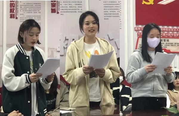 培養對象代表、20鍵盤班夏晨洋,高年級入黨積極分子代表、19管流一貫班張鬱鑫,新學員代表、19民樂一貫班餘葭奕發言。她們表示將牢記初心使命,堅定理想信念,在習近平新時代中國特色社會主義思想指引下,奔赴新征程,下一番心無旁騖、篤定前行的苦功夫,在培養中成長、在成長中升華,把服務奉獻作為人生底色,把砥礪奮鬥作為個人追求,在拚搏中成就出彩人生,給黨旗添光彩,書寫人生華章!