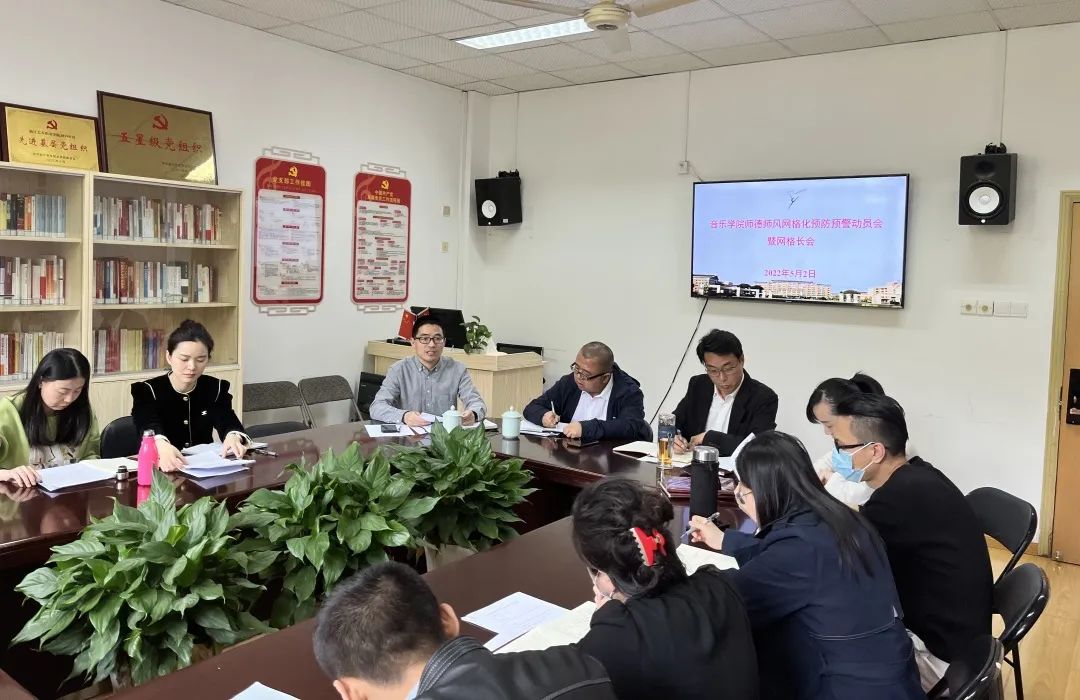 教師是教育的根本,師德是教師的靈魂。師德師風建設是教師隊伍建設的重中之重,是全麵貫徹黨的教育方針的根本保證,是辦“人民滿意教育”的關鍵。為全麵貫徹落實上級關於加強師德師風建設工作精神,根據《浙江藝術職業學院師德師風網格化預防預警工作實施方案》要求,進一步弘揚崇高的師德風範,引導教師立德樹人,為人師表,不斷提升人格修養和學識涵養,努力建設一支師德高尚、業務精湛、結構合理、充滿活力的教師隊伍。5月2日,音樂學院專題召開師德師風網格化預防預警工作動員會暨師德師風網格長會。院領導班子、辦公室主任、教工黨支部書記和教研室主任參加。
