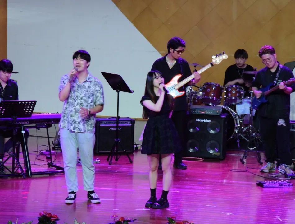 平日裏以演奏樂器見長的流行音樂專業的同學們,在這場音樂會中向在座的師生們充分展示了自己的歌唱天賦,甚為吸睛。20流行鍵盤專業的薑美善同學為大家帶來了《江南》《心做》兩首風格迥異的歌曲,充分顯露了她駕馭不同類型作品的能力。《江南》還特邀到了民樂專業王欣府同學的友情助力,悠遠深長的簫聲從遠處蔓延開來,瞬間點亮了整首歌曲,成為音樂會的一大亮點。素有“浙藝小吳青峰”美譽的19流行一貫林梓豪同學一改平日裏揮灑自如的鼓手形象,化身為深情款款的情歌王子,為大家帶來了一曲《我好想你》。作為2021浙藝“十佳歌手”的主持人李佳怡則一改往常懷抱一把木吉他的恬靜形象,可甜可鹽的她聯袂葛晨同學為大家帶去了男女聲對唱歌曲《想把我唱給你聽》,贏得了現場熱烈掌聲。