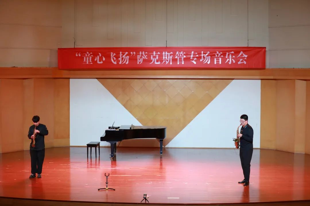 接著,青年教師周遠星再度登場,為大家帶來了兩首由我院音樂製作專業學生以溫州民歌為素材而創作的作品《巷》《叮聆》。“巷”描繪了兩側盡是青瓦老屋的江南青石小巷畫麵,細雨飄搖、屋簷滴水、日暮西沉,行人踏至煙水路。《叮聆》是根據溫州世代相傳、伴隨溫州人長大的民謠改編的薩克斯曲目,令人回味無窮。兩首原創作品恰如其分地呼應了本場音樂會的主題“童心飛揚”,喚起了觀眾心底兒時的記憶。