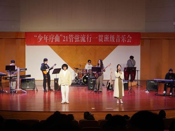 音樂會的下半場是流行音樂專業同學的精彩高光時刻。擔任下半場電聲樂隊伴奏的是 21 流行一貫的徐楊、籃子翔、張明朔、潘亦博、潘妮、章曉雪、楊樂啟、鄭卜瑋、劉軒?9名同學,在這支?春活力的隊伍中,彙集了音樂學院第二屆學 生技能大賽(流行音樂專業)的數名獲獎選手,一經亮相便贏得了全場熱烈的歡呼聲。