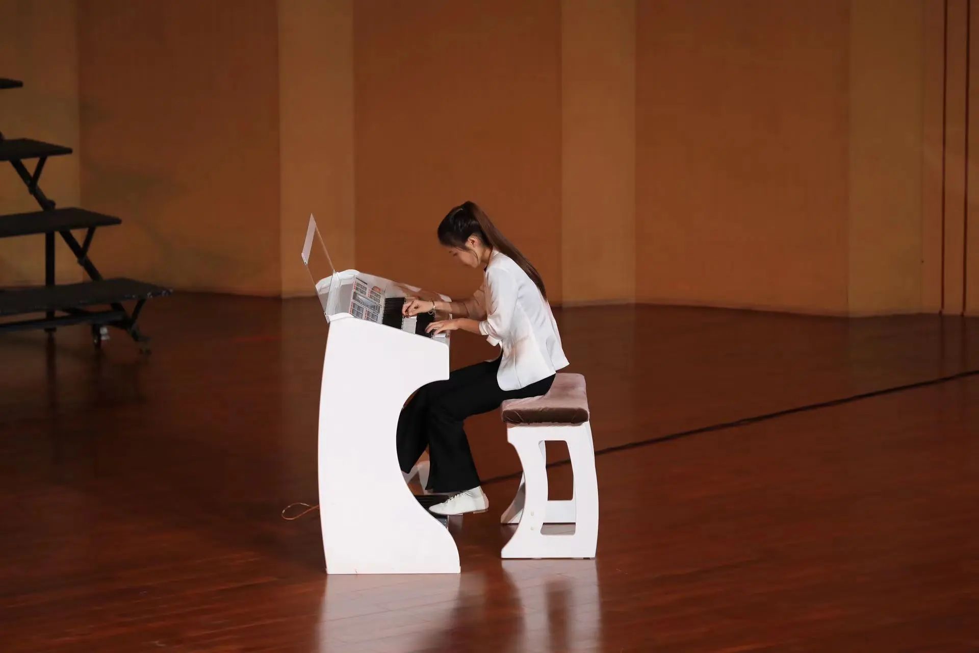 雙排鍵演奏《威風淩淩進行曲》。激蕩澎湃的雙排鍵琴聲讓整個音樂廳沉浸其中,雄勁剛健的旋律和堅定有力的節奏震撼人心。