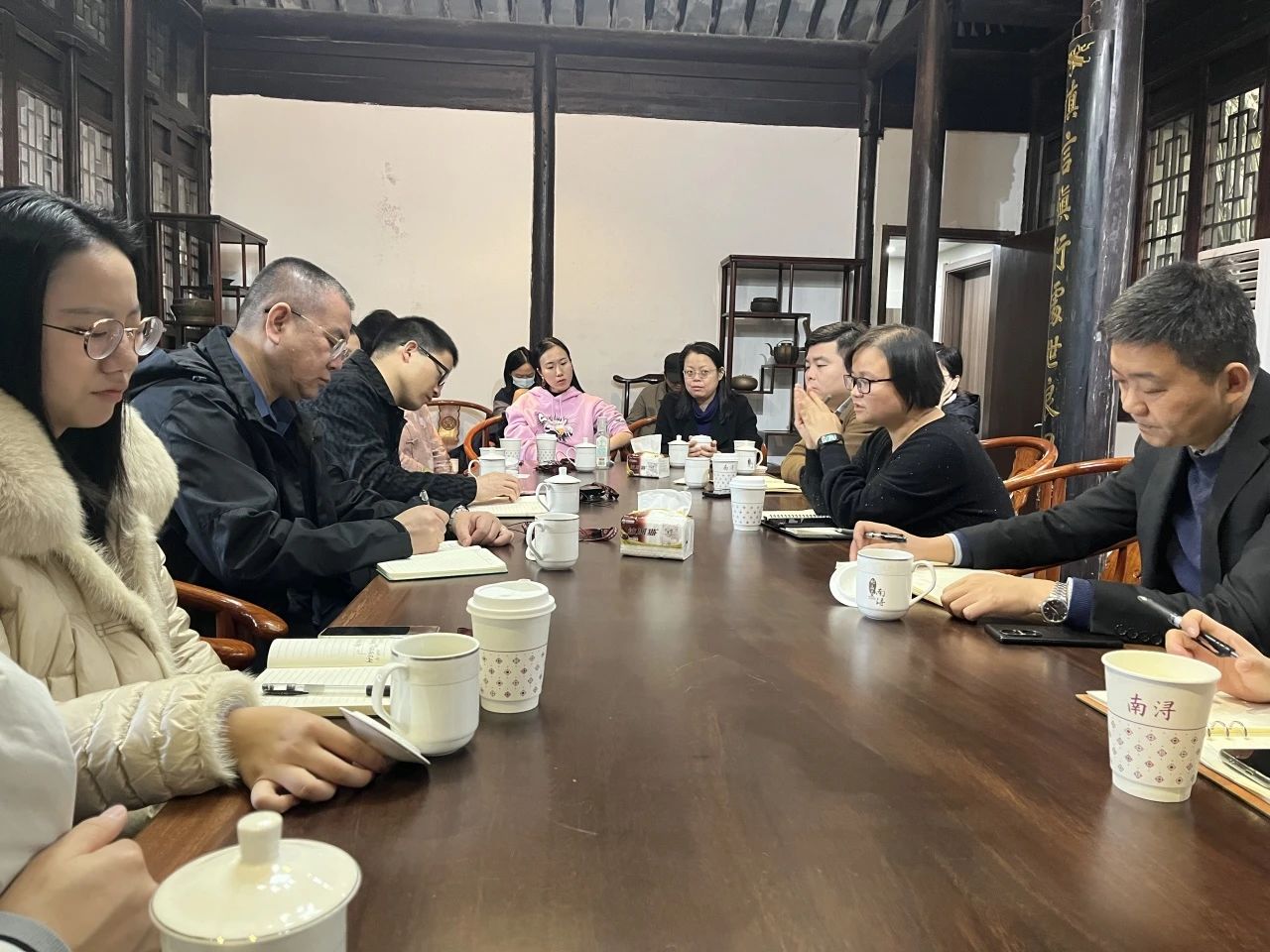 對於學院黨總支組織的黨員骨幹教師赴湖州南潯開展訪企拓崗活動,湖州南潯文旅發展集團有限公司表示熱烈歡迎,總經理張麗莉、集團總經理助理褚夏亮、集團營銷公司總陳宇衡、集團品宣部副部長盧淑娟與參與活動的全體教師進行了深入的座談交流。張麗莉表示,南潯古鎮距今已有七百多年的曆史,是“江南六大古鎮”中文化積澱最深、保存最完好的古鎮。隨著疫情的結束和古鎮景區運營管理模式的調整,今年南潯古鎮旅遊人數將突破1000萬人,首次實現年內破千萬遊客的目標。為提升南潯古鎮內涵,豐富古鎮旅遊業態,近年來集團十分重視文旅融合的發展,此次能與音樂學院進行深度交流更是基於集團麵向未來的發展決策上的一次探索,希望能實現音樂學院人才優勢與南潯文化藝術發展潛力的完美結合,推動雙方優勢互補,共同發展。