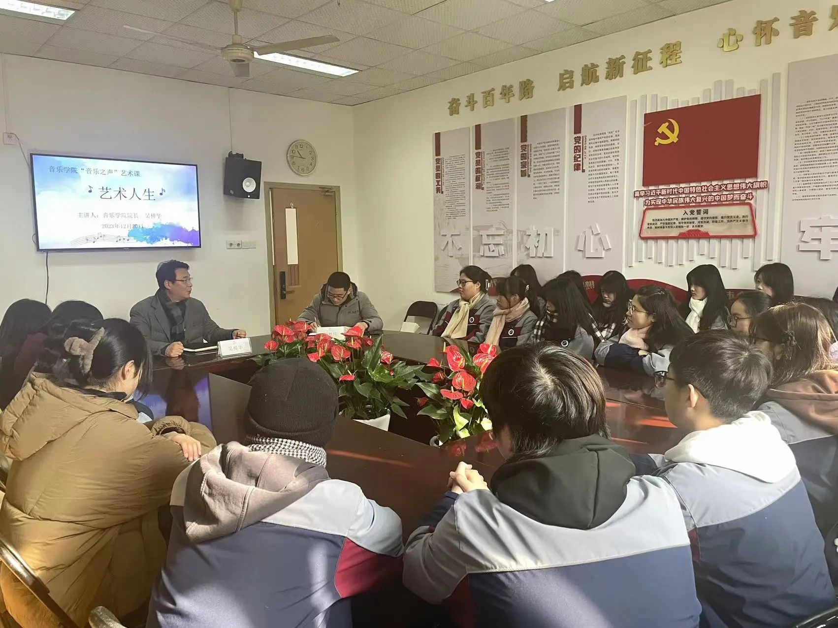為進一步加強師生溝通與交流,幫助同學們解決學習和生活上的困惑。12月20日,音樂學院組織召開以“藝術人生”為主題的“音樂之聲”藝術課。課上,音樂學院院長吳樟華與同學們親切交流分享了個人的藝術起源和學藝生涯等內容,和同學們共話成長。