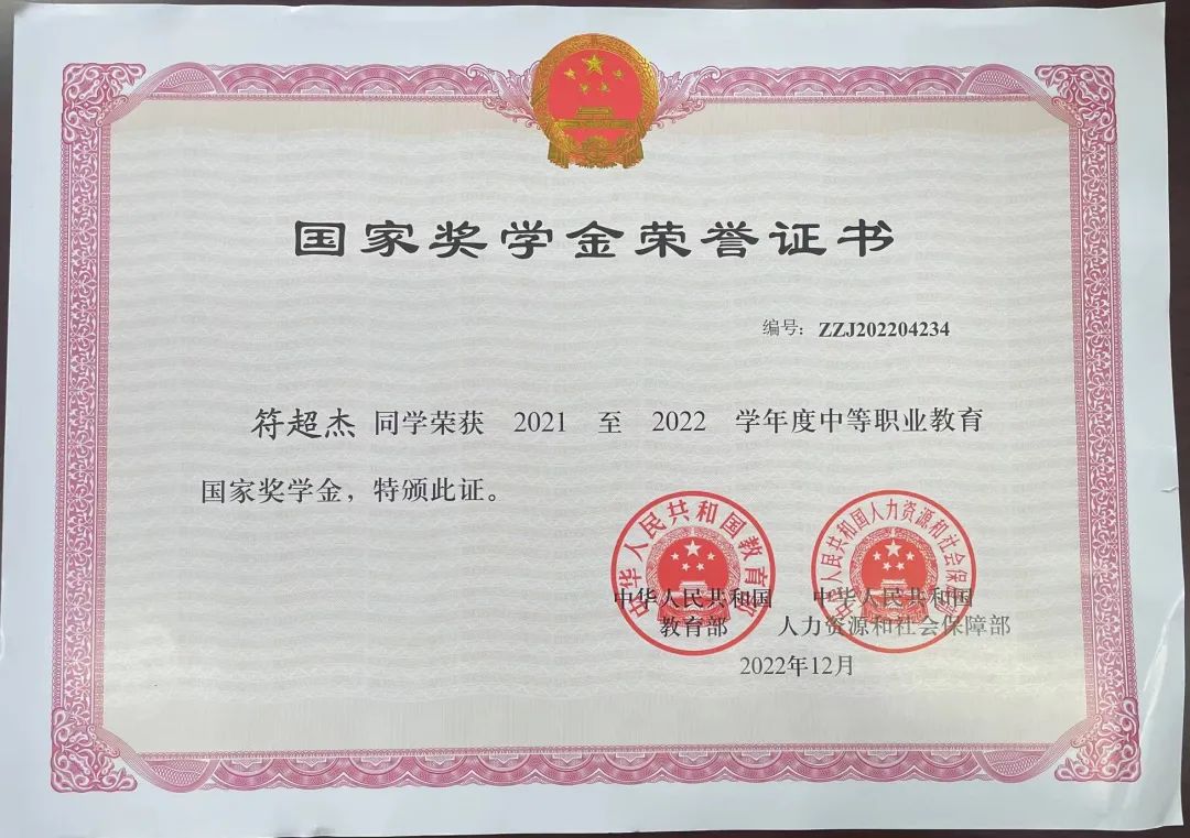 喜報 | 熱烈祝賀學院2名學子榮獲中職國家獎學金