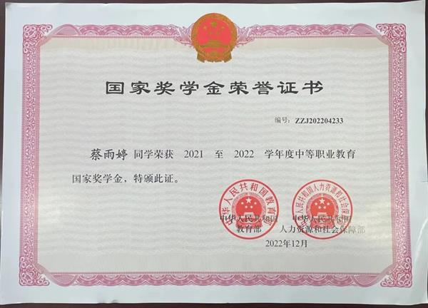 近日,教育部、人力資源社會保障部聯合發布《關於2021—2022學年度中等職業教育國家獎學金獲獎學生名單的公告》,音樂學院蔡雨婷、符超傑榜上有名,榮獲“國獎”。