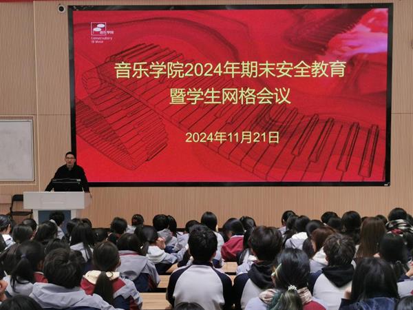 本次會議,表彰了榮獲“練琴之星”的同學,同時進一步增強了同學們的安全意識。年末將至,學院將繼續加強學風建設和安全教育工作,為全體學生的健康成長和全麵發展保駕護航,為推進高質量平安校園建設貢獻力量。