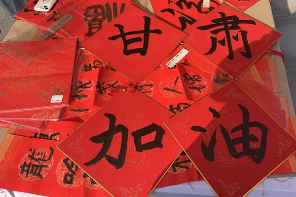 恰逢手工藝學院的新年手工藝市集開展。活動還得到了手工藝學院老師與同學的大力支持,我們與他們一起喊出了“甘肅加油”。